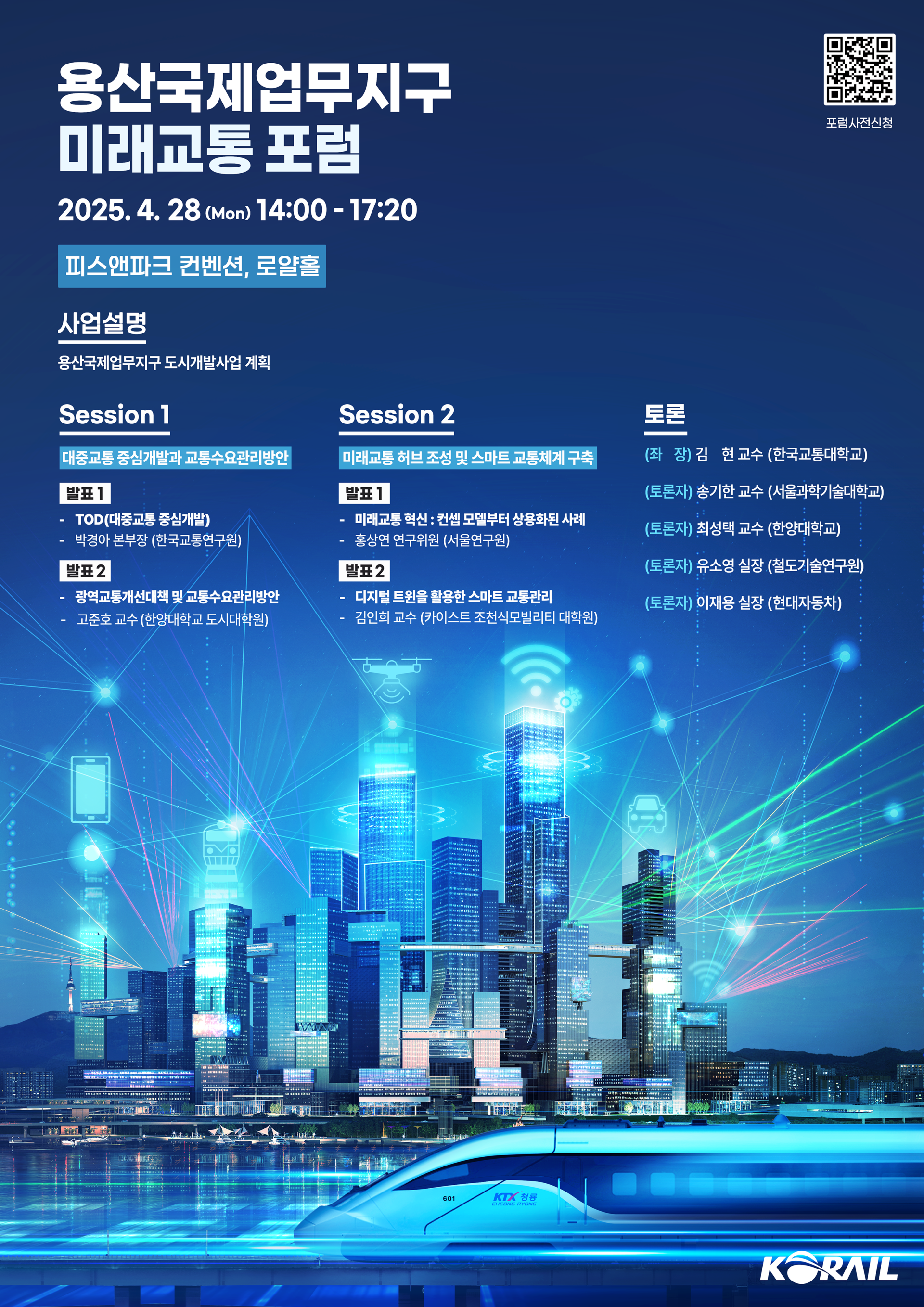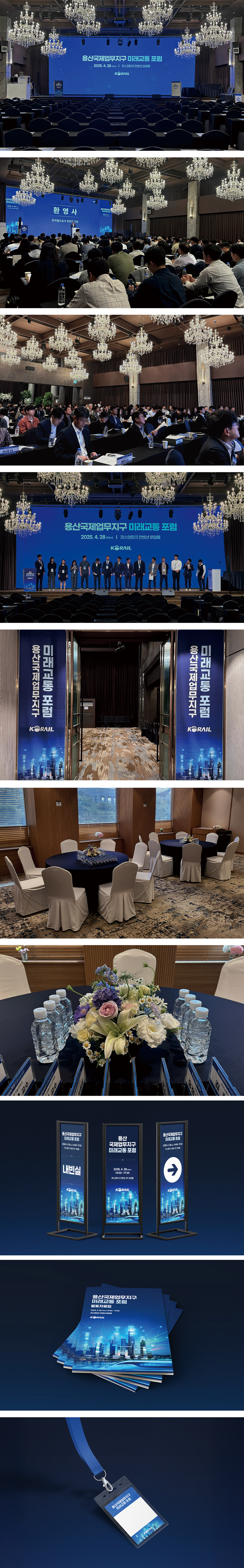 행사 공간 연출, 운영 전반 총괄 [디자인 기획 및 제작] 도시 스카이라인·미래교통 기반 메인 KV기획·제작 온·오프라인 제작물·기념품 디자인 제작 [무대 및 공간 연출] 단상·패널석 중심 무대 연출 설계 좌석 배치·VIP좌석·리셉션을 포함한 전체 공간 연출 계획 [현장 설치 및 운영] 현장 제작물 일괄 설치·점검 음향·화면·조명 및 현장 운영 [참석자 관리 및 진행 디렉팅] VIP대기실 및 좌석 운영 안내 등록·입장